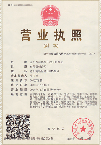 蘇州萬科環境工程有限公司,位于蘇州高新區技術開發區環保產業園內,是一家高新技術、民營科技企業。公司主要從事:環保、水處理、凈化等工程的設計、安裝、調試、運行、維護;研發、生產、銷售:環保、水處理、凈化設備。